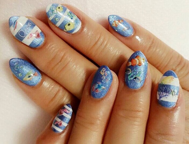 ネイルギャラリー ブルー×ホワイトボーダー 海ネイル♪