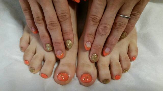 ネイルギャラリー オレンジゴールドでおそろいジェル♪
