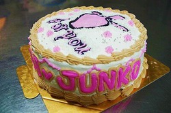 ずーっと自分の店のロゴのケーキを